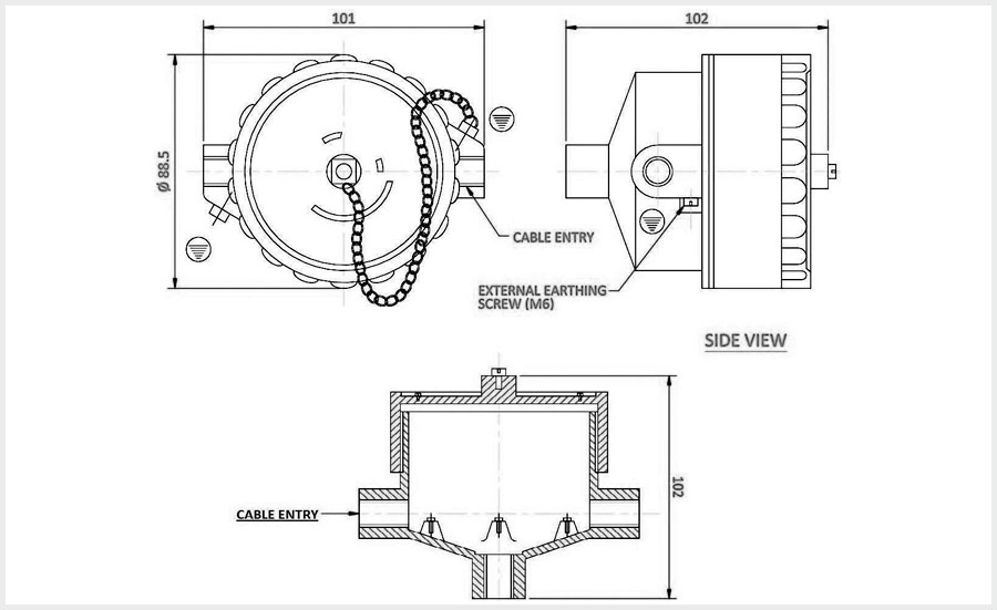 | Cable Entry | 01 OR 02 Nos. M20 (3/4"ET) & 01 No. 1/2" BSP Bottom Side |